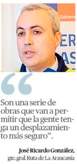 “Hace varios años que no se hacía una inversión tan importante como ésta, estamos hablando de 37 mil millones de pesos en obras que van en directo mejoramiento de nuestro tramo concesionado y que ya las estamos ejecutando”, comentó el gerente general de la Ruta de La Araucanía, José Ricardo González.
