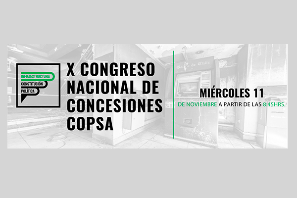 COPSA – El próximo miércoles 11 de noviembre a las 8:45 hrs. se realizará el décimo Congreso Nacional de Concesiones (X CNC), el que por primera vez se efectúa de forma 100% online debido a la pandemia. En la instancia tendremos dos paneles conformados por destacados expertos en materias de infraestructura y concesiones. Además, contaremos con la exposición del economista internacional Sebastián Edwards, quien hablará sobre la importancia de la certeza jurídica en las inversiones de largo plazo.