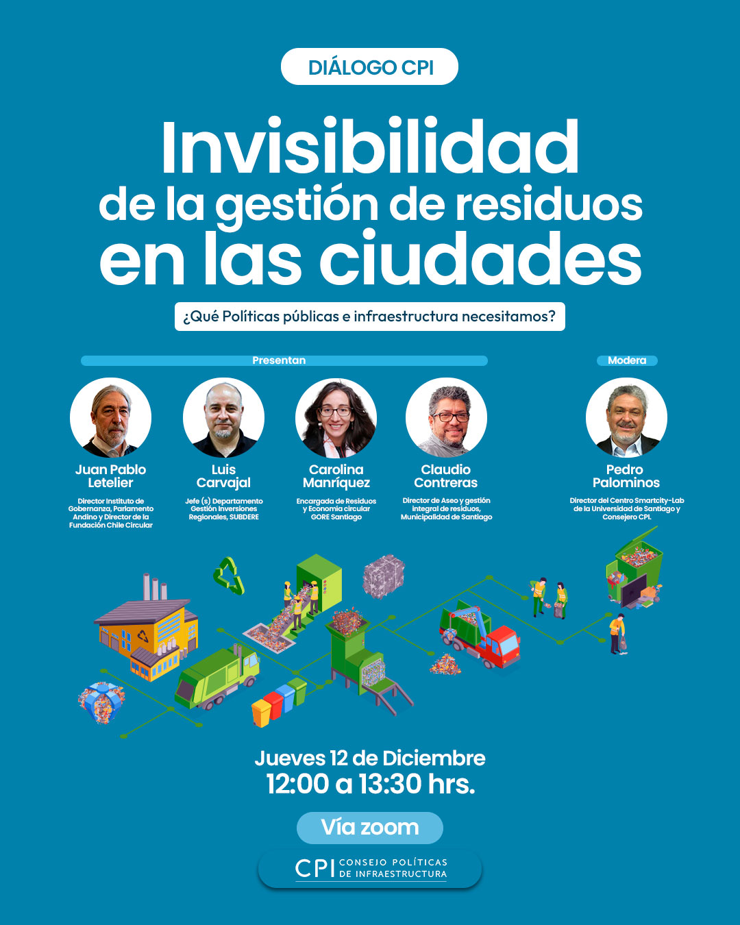 CPI – El CPI lo invita al Diálogo “Invisibilidad de la gestión de residuos en las ciudades: ¿qué políticas públicas e infraestructura necesitamos?” Un espacio para reflexionar y proponer soluciones que fortalezcan el desarrollo sostenible de nuestras comunidades urbanas, enfrentando uno de los desafíos más urgentes de la actualidad.