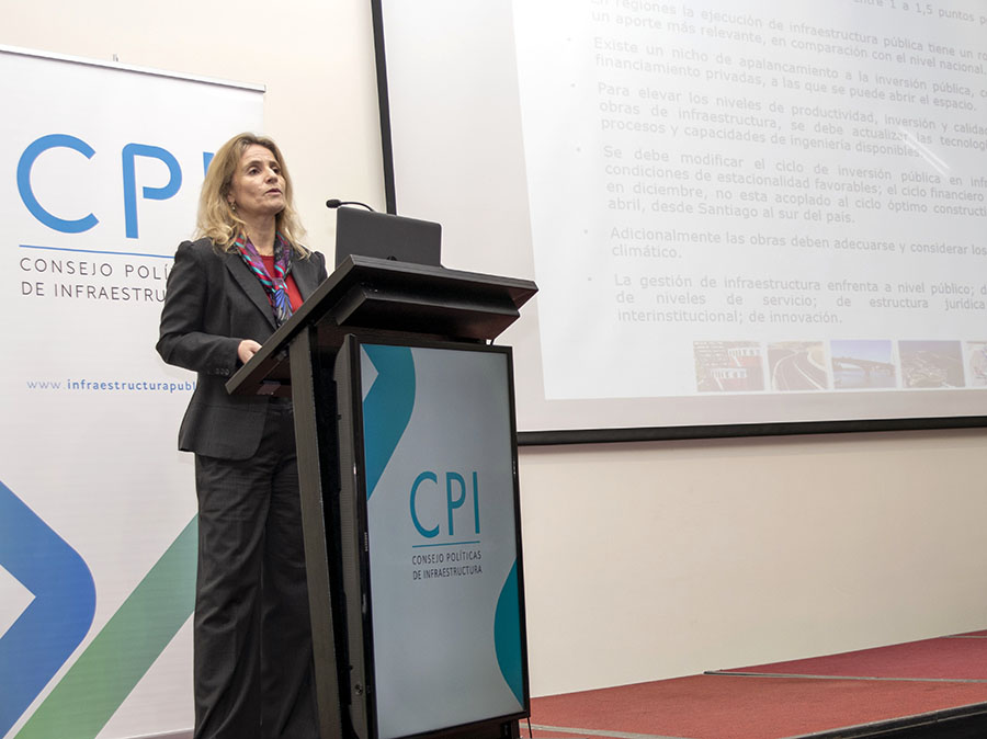 Por su parte, la directora general de Obras Públicas, Mariana Concha, aseveró que existen amplios espacios para mejorar la regulación existente para la construcción de obras públicas, pero que es imprescindible modernizar las tecnologías y homologarlas entre el sector público y privado (ejecutores y mandantes). Sugirió que las universidades, la Cámara Chilena de la Construcción y el MOP debieran hacer una alianza que permita estar a la vanguardia de las técnicas e investigaciones aplicadas, para mejorar la infraestructura en el país. Destacó, además, la necesidad de actualizar la reglamentación para el desarrollo de la ingeniería y la construcción de obras e hizo un llamado a desarrollar nueva infraestructura pública mediante profundizando la alianzas público-privadas. “ El MOP está muy abierto al cambio, aunque debe enfrentar resistencias internas como toda institución del tamaño de esta”. Finalmente, recalcó que el Estado debe continuar analizando las metodologías de evaluación que permitan y faciliten la ejecución de los mejores proyectos de infraestructura.