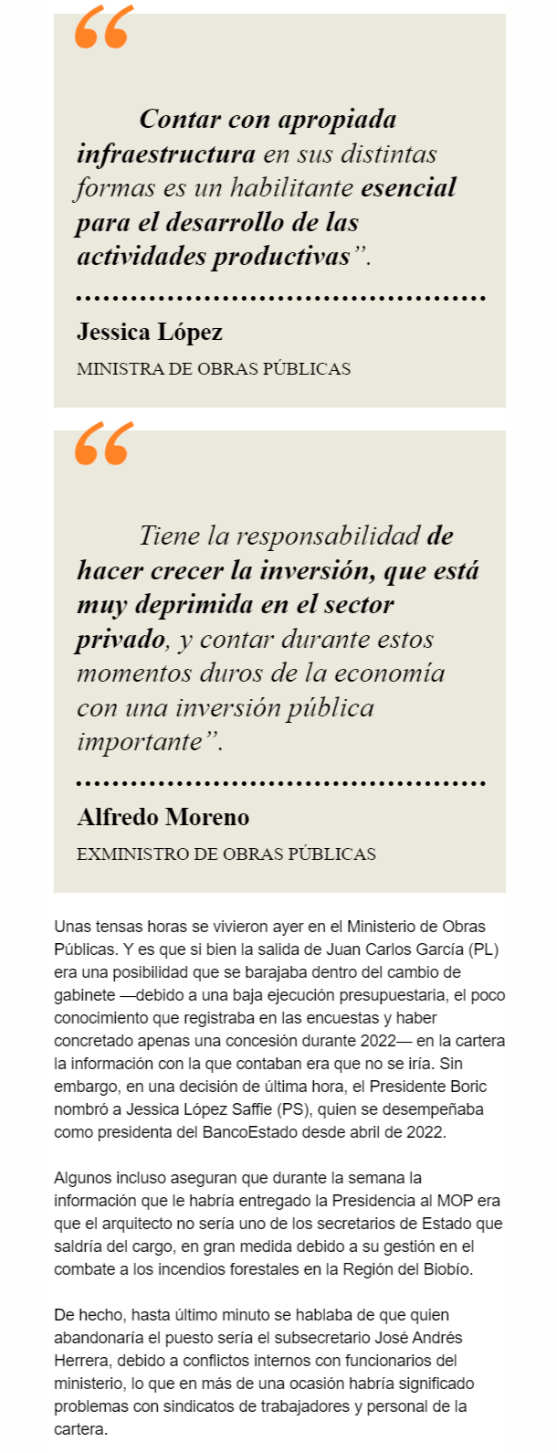 EL MERCURIO – “La idea es que impulse la infraestructura a largo de Chile, para lo cual es fundamental la máxima colaboración público-privada”, menciona Carlos Cruz.