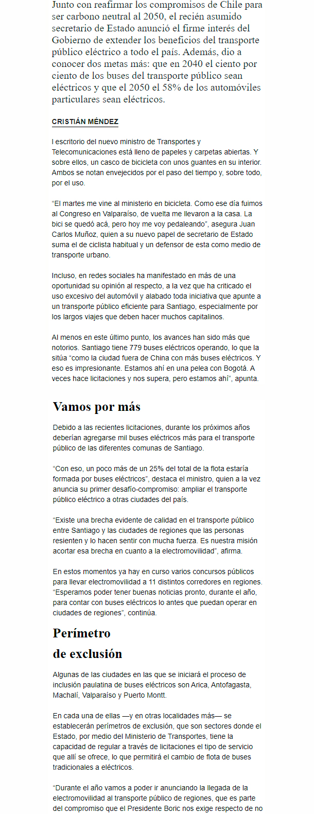 EL MERCURIO – El secretario de Estado anunció el firme interés del Gobierno de extender los beneficios del transporte público eléctrico a todo el país.