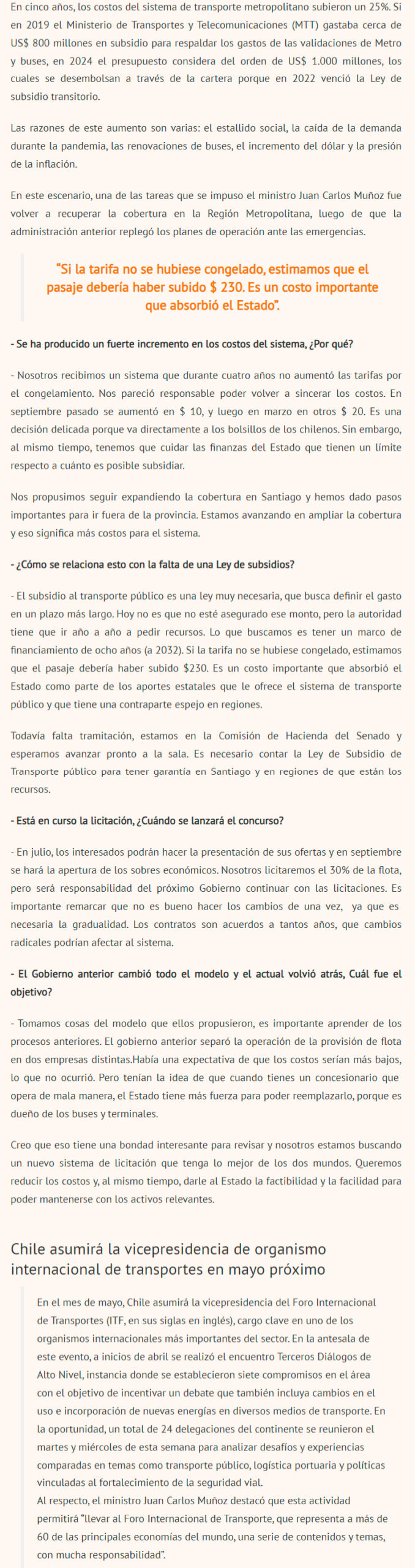 DIARIO FINANCIERO – En plena renovación del 30% de los buses, las empresas deberán presentar en julio sus ofertas para este proceso, cuyos cambios de flota deben ser “graduales”, advirtió