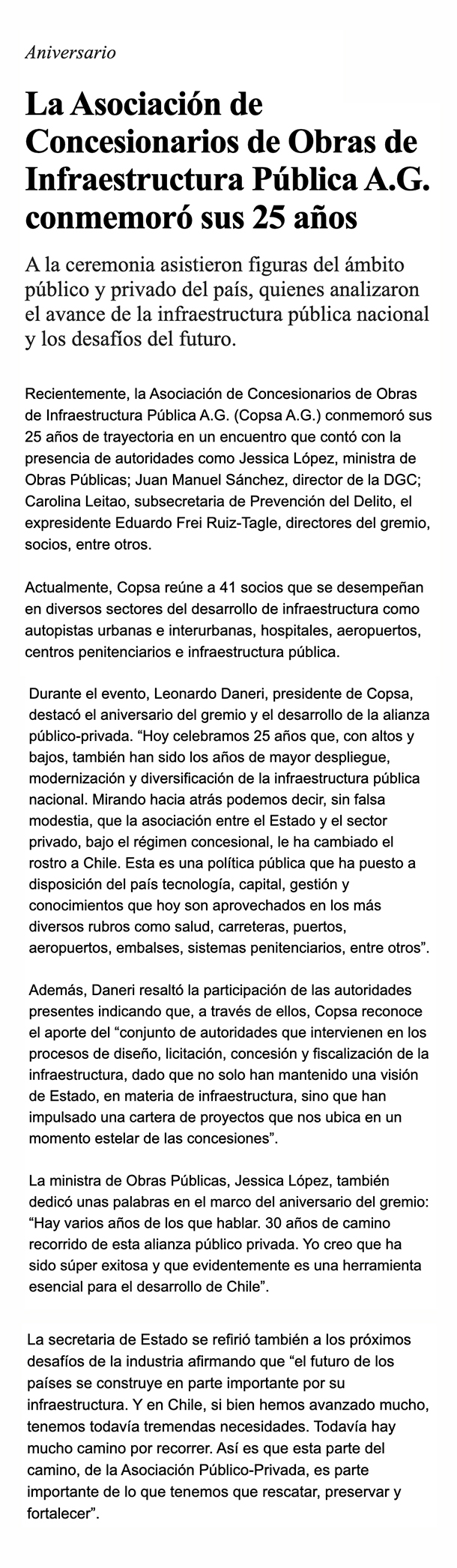 EL MERCURIO – A la ceremonia asistieron figuras del ámbito público y privado del país, quienes analizaron el avance de la infraestructura pública nacional y los desafíos del futuro