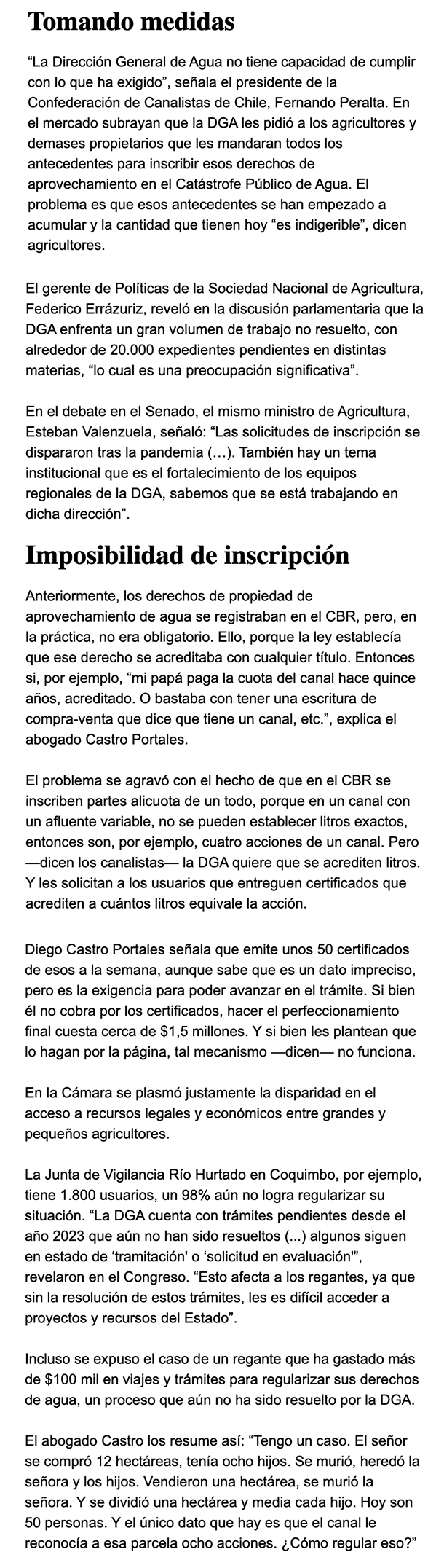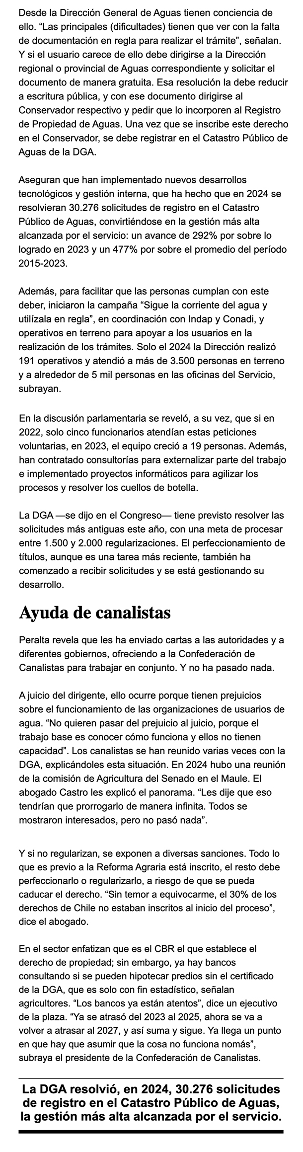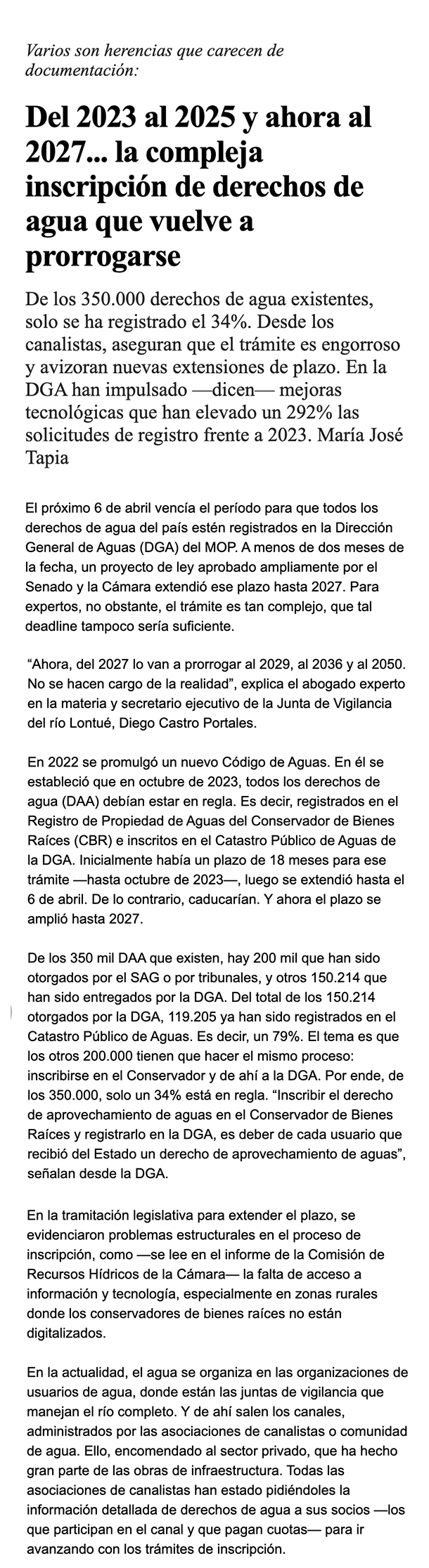 EL MERCURIO – De los 350.000 derechos de agua existentes, solo se ha registrado el 34%. Desde los canalistas, aseguran que el trámite es engorroso y avizoran nuevas extensiones de plazo.