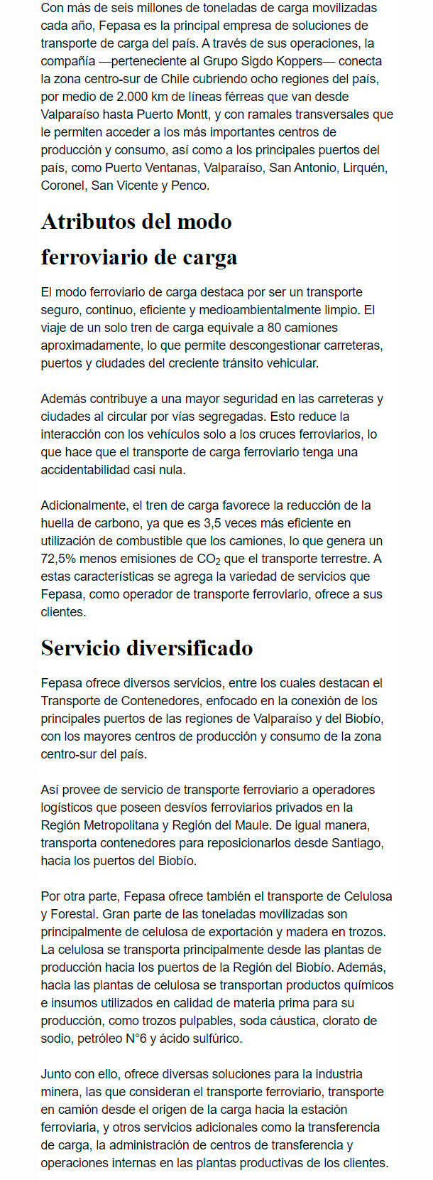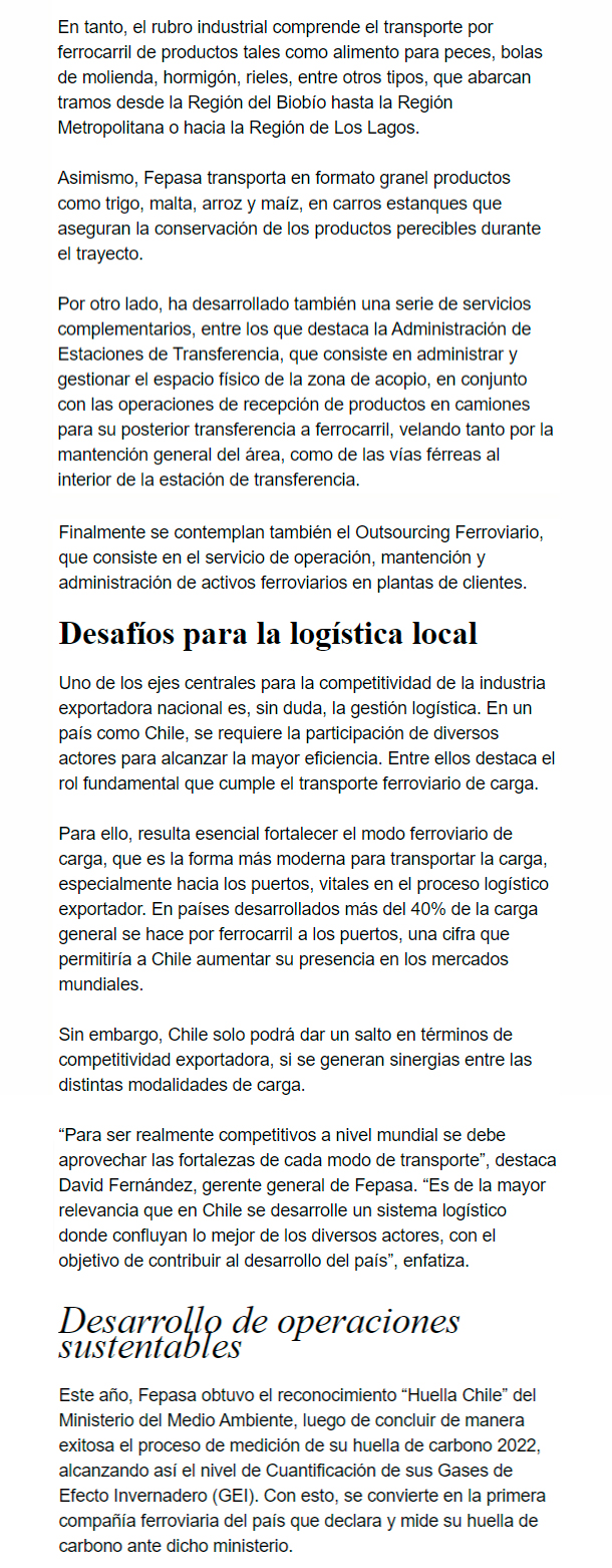 EL MERCURIO – A través del modo ferroviario de carga, la compañía se ha destacado en la industria local por llevar a cabo operaciones sostenibles.