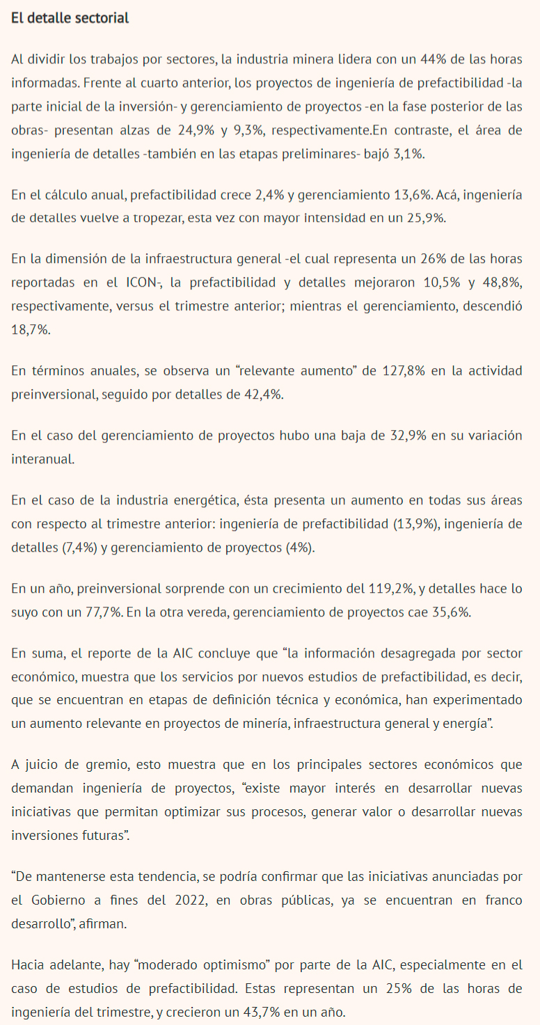 DIARIO FINANCIERO – La medición que realiza la AIC mostró un alza de 6,4% en el tercer trimestre frente al mismo período de 2022.