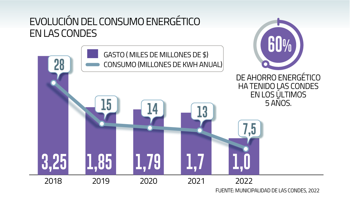 DIARIO FINANCIERO – En 2018, la Municipalidad de Las Condes comenzó a delinear lo que sería uno de sus planes más ambiciosos: convertir a la comuna en una smart city (ciudad inteligente). En este contexto, dio un primer paso: en 2018 partió con la implementación de la Estrategia de Ahorro Energético Comunal, con el recambio de 42 mil luminarias a tecnología LED, lo que significó un ahorro energético de casi un 60% en los últimos cinco años.