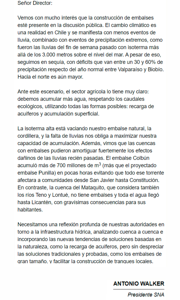 EL MERCURIO – Necesitamos una reflexión profunda de nuestras autoridades en torno a la infraestructura hídrica, analizando cuenca a cuenca e incorporando las nuevas tendencias.