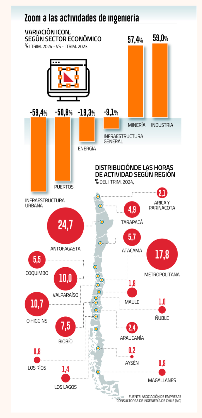 DIARIO FINANCIERO – El Índice de Actividad de la Ingeniería (ICON) de la AIC aumenta 7,6% respecto al cuarto trimestre de 2023 y 14% en comparación con el primer trimestre del año pasado