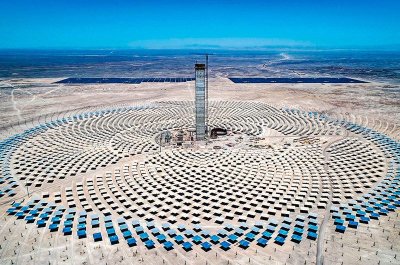 España y Estados Unidos son los países con la mayor capacidad instalada de energía termosolar. Pero esta planta termosolar no está en ninguno de esos países. Está en Chile.