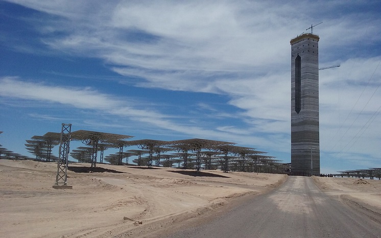 Entre los elementos clave que quedan por construir está la planta generadora eléctrica, que estará al centro del complejo, el que además incluye la instalación de casi 11 mil espejos (heliostatos) que reflejarán la radiación solar a la estructura principal en un entorno de 360 grados.
