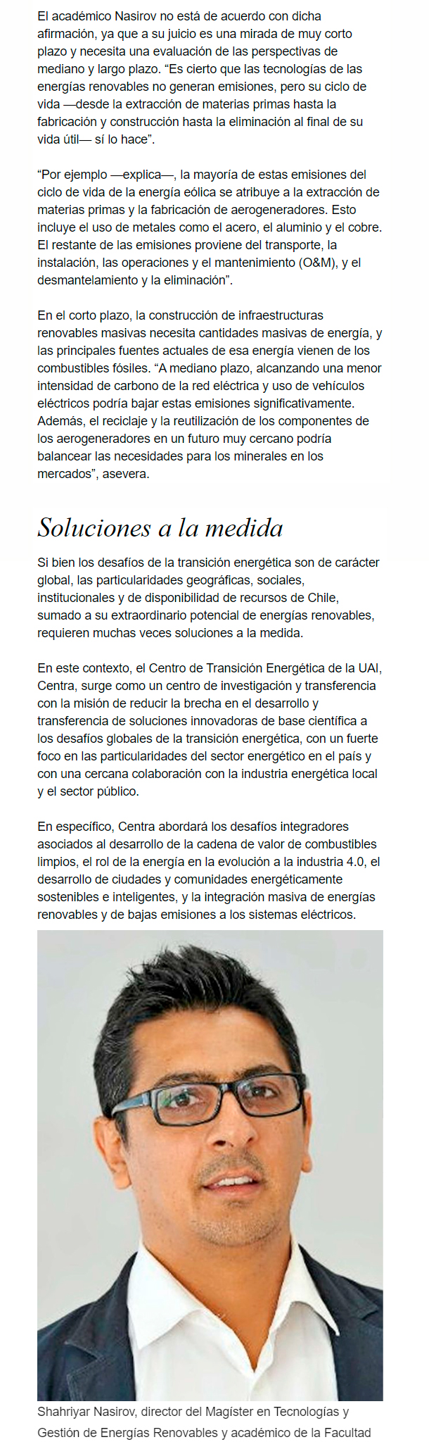 EL MERCURIO – Además de las contribuciones al cambio climático, este proceso crea nuevas oportunidades de negocio y fuentes de ingresos. Por ejemplo, el desarrollo de proyectos de hidrógeno verde y desalinización de agua del mar, entre otros.