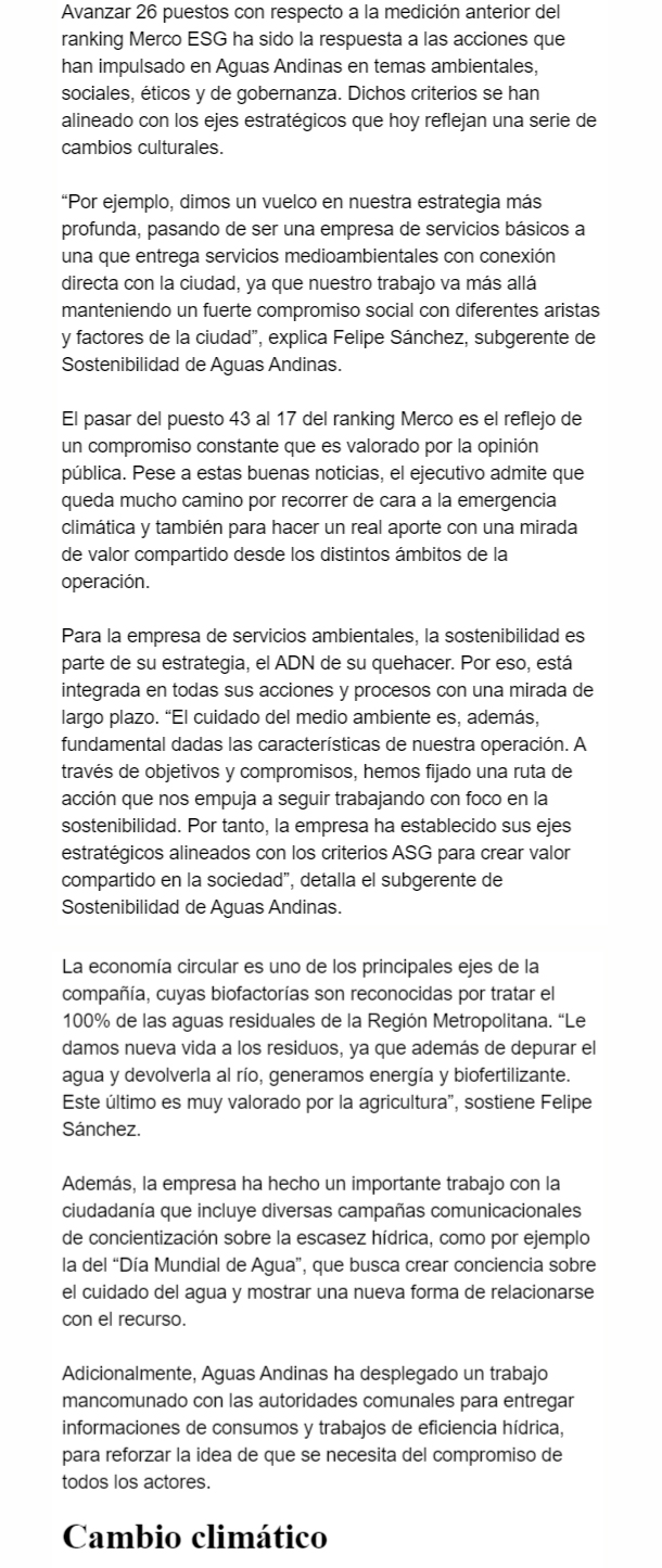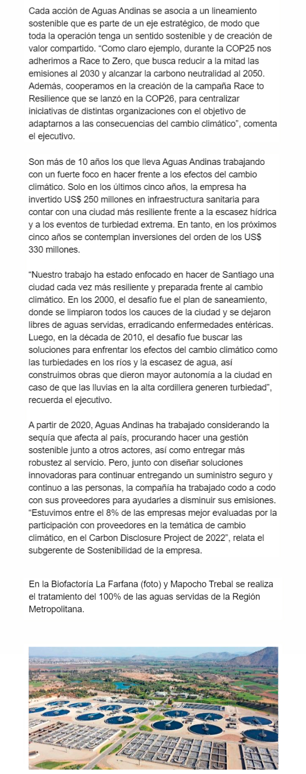 EL MERCURIO – Alinear sus ejes estratégicos con los criterios ESG, apostando por la creación de valor compartido, permitió que pasara del lugar 43 al 17 en la medición