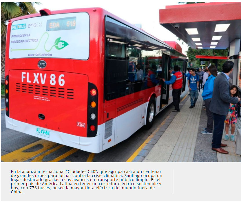 En este último aspecto, Santiago ocupa un lugar destacado. En 2018, una alianza entre Enel X, Metbus y BYD introdujo los primeros 100 autobuses eléctricos en la red de transporte público de la ciudad; al año siguiente, Chile se convirtió en el primer país de América Latina en tener un corredor eléctrico sostenible y hoy, con 776 buses, posee la mayor flota eléctrica del mundo, fuera de China.