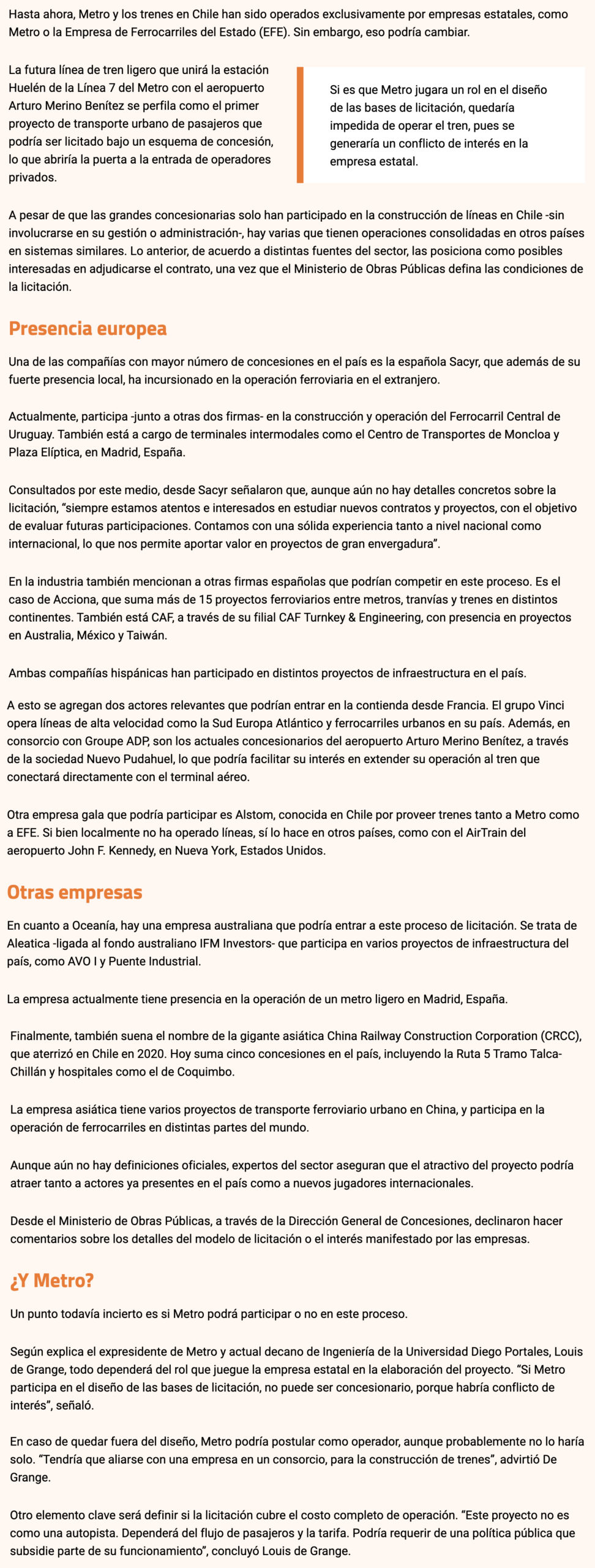 DIARIO FINANCIERO – A pesar de que en Chile este tipo de transporte no se ha licitado, varias firmas con presencia local sí han gestionado estos sistemas en otros países