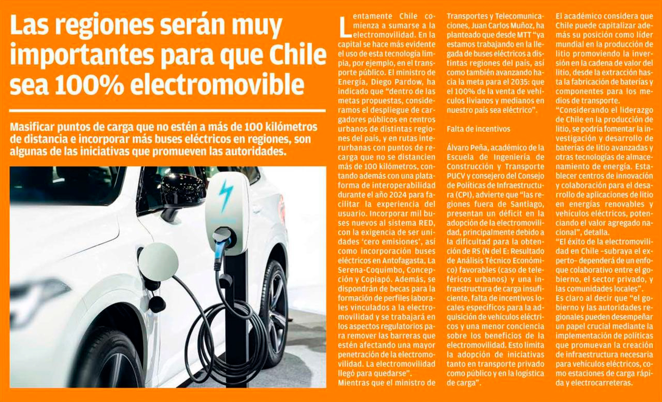 EL MERCURIO DE ANTOFAGASTA – Masificar puntos de carga que no estén a más de 100 Kilómetros de distancia e incorporar más buses eléctricos en regiones son algunas iniciativas que se promueven
