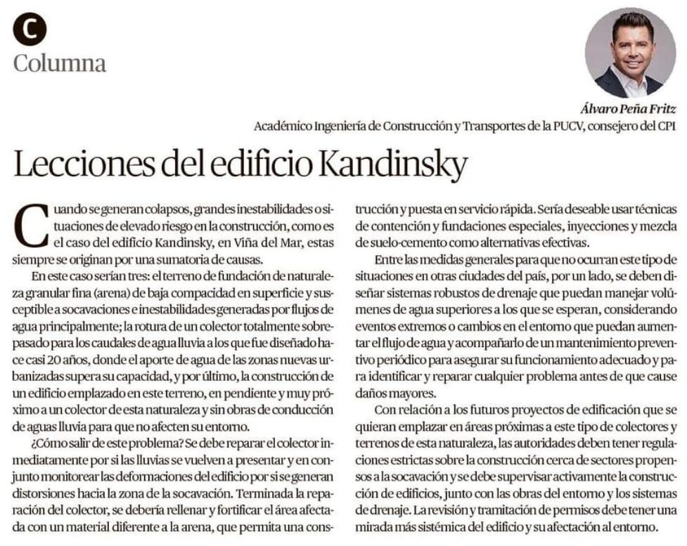 EL MERCURIO DE VALPARAÍSO – Cuando se generan colapsos, grandes inestabilidades o situaciones de elevado riesgo en la construcción, estas siempre se originan por una sumatoria de causas.