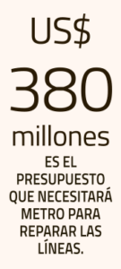 Un tema que falta definir es cuál será el mecanismo que utilizará Metro para poder financiar los US$ 380 millones que costará la reparación del sistema.