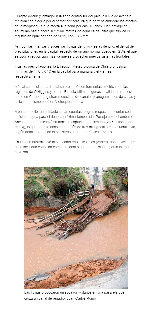 Fuente: El Mercurio, Miércoles 22 de Julio de 2020