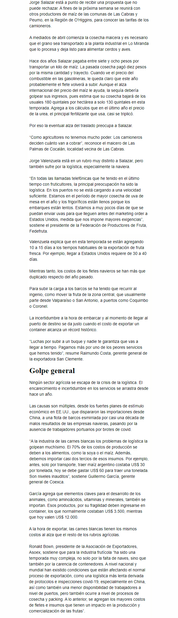 REVISTA DEL CAMPO – Mayores costos, una menor llegada de barcos en momentos clave del año y mayores tiempos de traslados golpean los ingresos de los agricultores