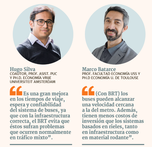 El Ph.D. en Economía de la Vrije Universiteit Amsterdam indicó que el principal efecto del sistema es “una gran mejora en los tiempos de viaje, espera y confiabilidad de la operación de los buses, ya que con la infraestructura correcta, el BRT evita que éstos sufran los problemas que ocurren normalmente en tráfico mixto –por ejemplo, junto a autos y motos-, como encontrarse con tacos o enfrentar demoras ligadas a la validación del pago dentro del bus”.
