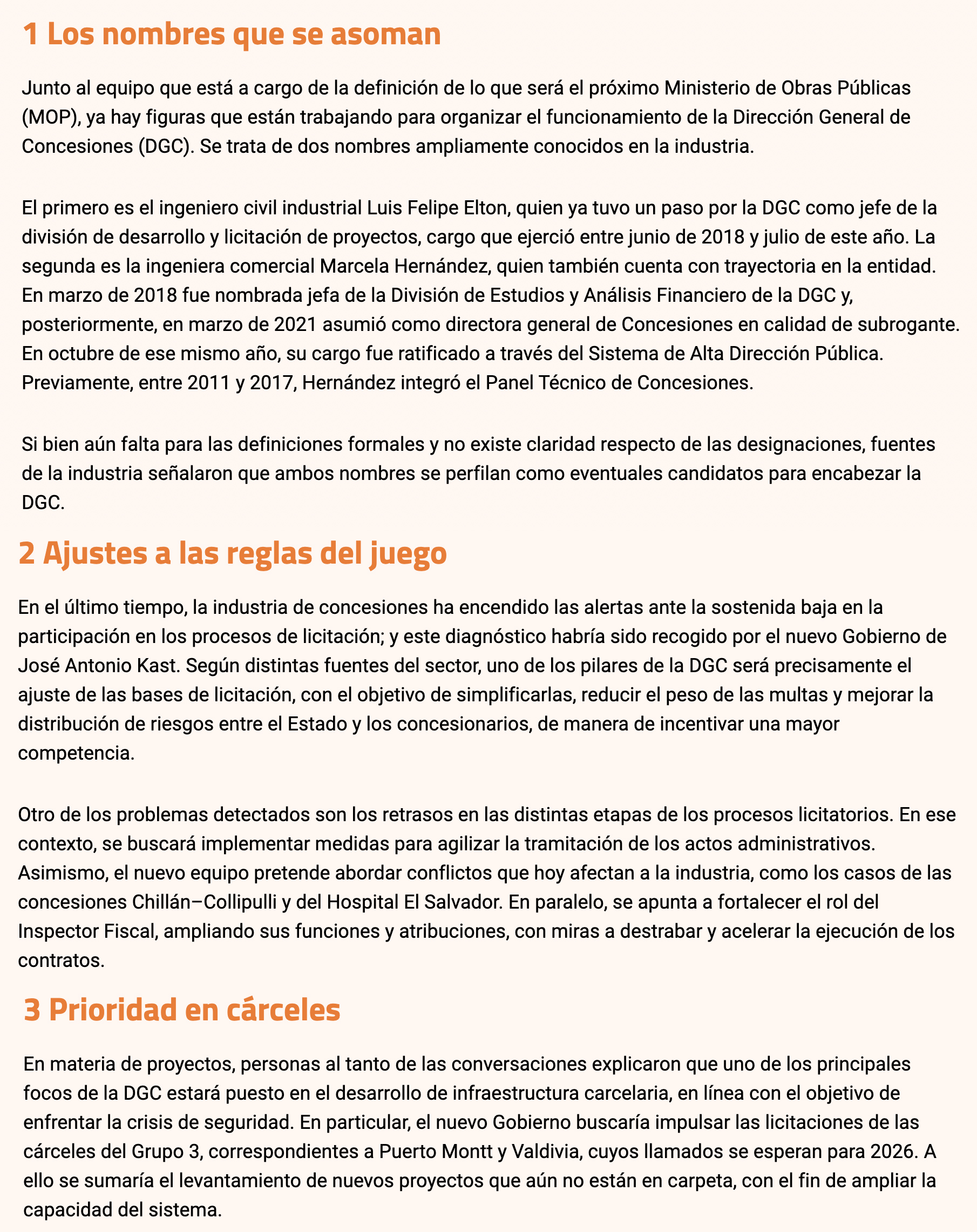 Los nombres que suenan y los ejes que marcarán la nueva Dirección de Concesiones del Gobierno de Kast