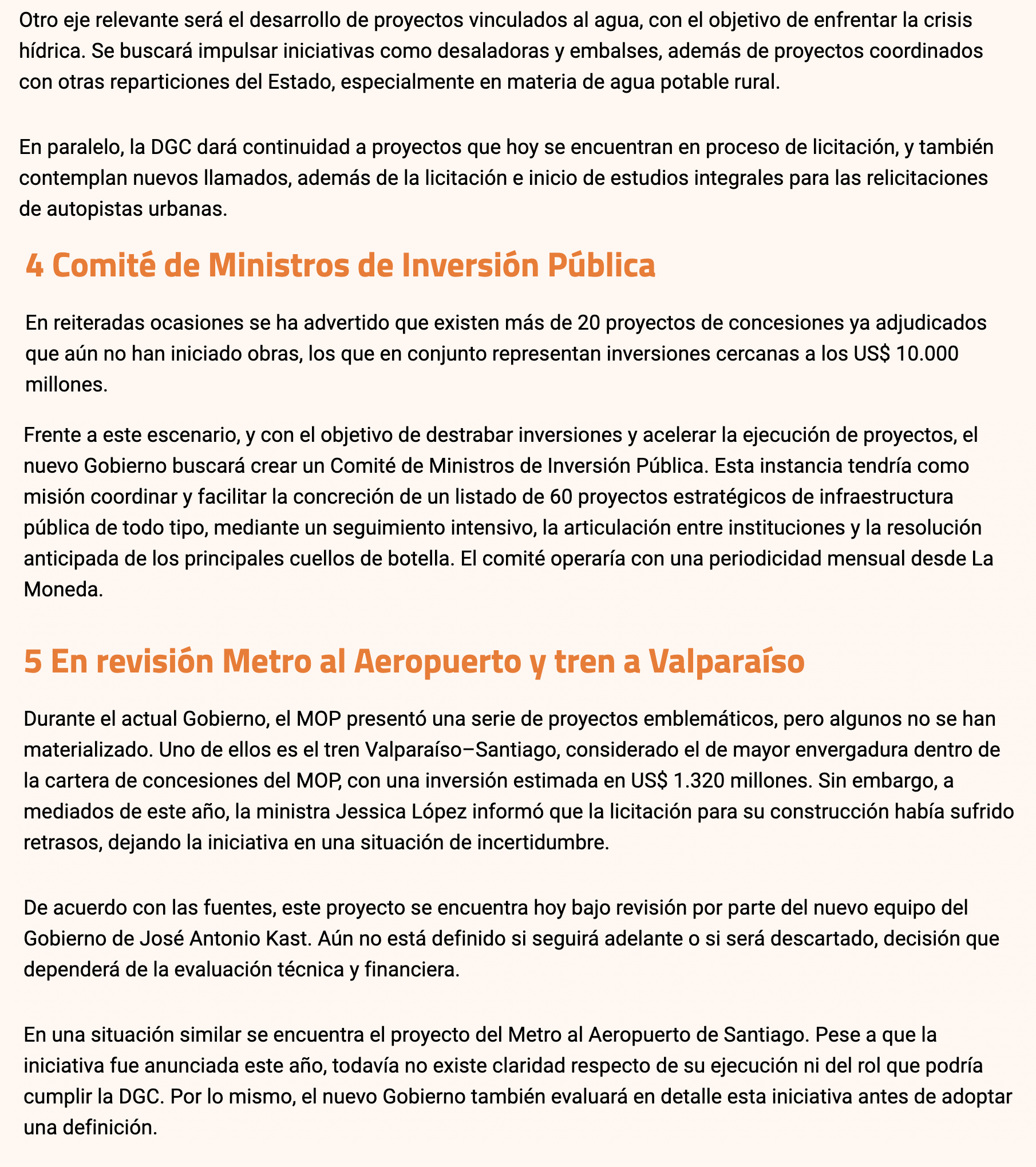 DIARIO FINANCIERO – Con la cuenta regresiva en marcha para el inicio de un nuevo Gobierno, el equipo encargado de diseñar la próxima etapa del MOP –liderado principalmente por Martín Arrau- ya comenzó a delinear el rumbo que tomará esta Dirección