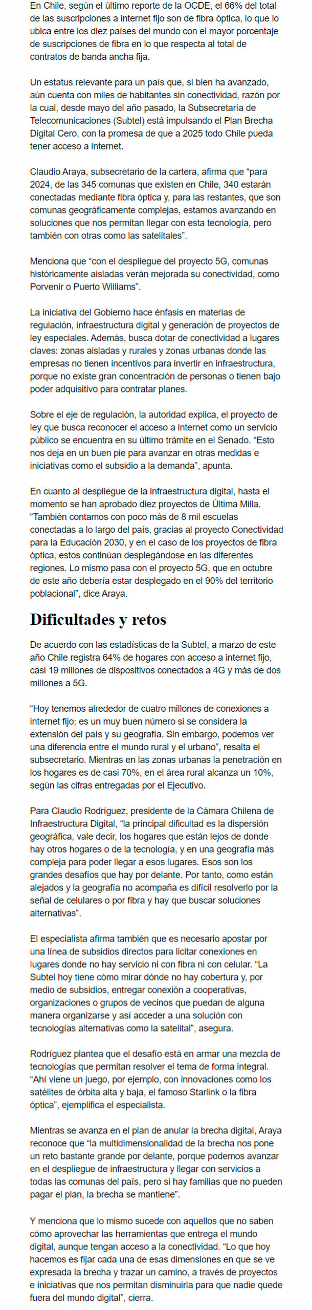 EL MERCURIO – La iniciativa del Gobierno apunta a que a 2025 todos estén conectados a internet, independiente del lugar en que viven o de las posibilidades económicas que tengan.