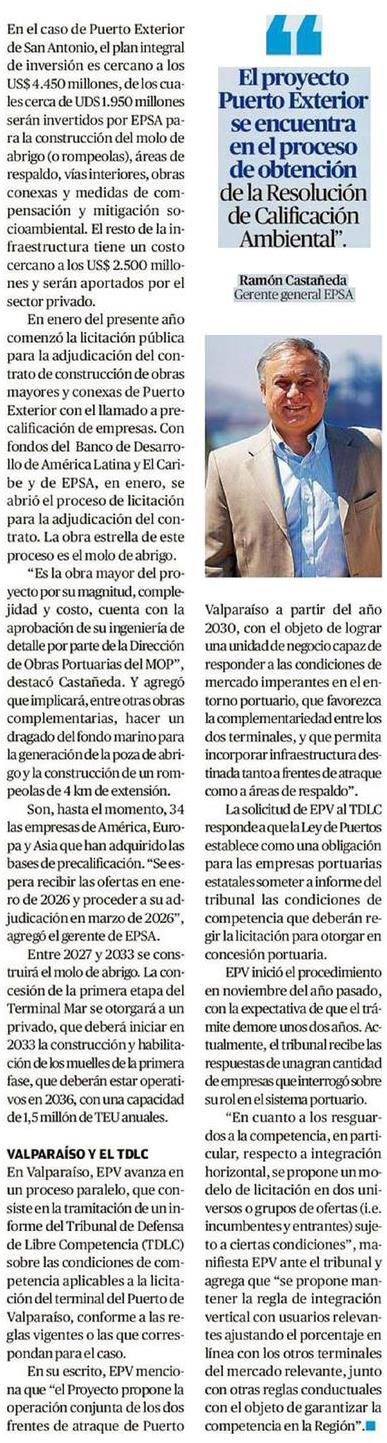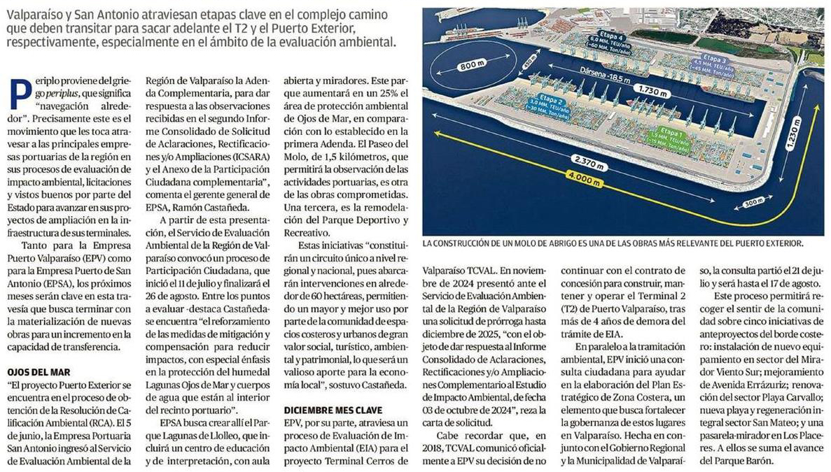 EL MERCURIO DE VALPARAÍSO – Valparaíso y San Antonio atraviesan etapas clave en el complejo camino que deben transitar para sacar adelante el T2 y el Puerto Exterior, respectivamente, especialmente en el ámbito de la evaluación ambiental.