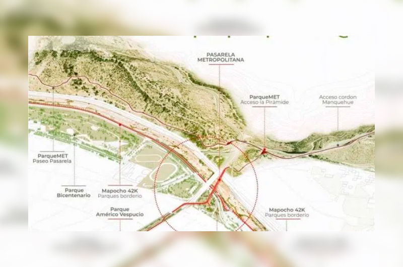 “Hoy existe una pasarela mínima y el proyecto de la concesionaria AVO, cuyo mandante es el MOP, contempla otra similar, que sólo permite conectar la ribera norte y sur del río, como un cruce”, señala. “Pero este es un punto neurálgico de Santiago, y lo que estamos planteando supera con creces los beneficios y la conectividad de la comuna de Vitacura; es la conectividad e integración de tres parques de escala metropolitana. El Parque Metropolitano, con sus 770 hectáreas y sus seis millones de usuarios anuales; el Parque Américo Vespucio, que ya comienza a abrirse, y todos los parques de Borderío, que en sus 42 kilómetros cruza once comunas, de oriente a poniente. Es una oportunidad única”.