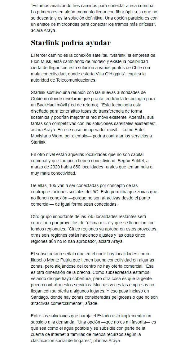 EL MERCURIO – Distintas soluciones se barajan para llegar con internet a todas las regiones. Hay cinco comunas que no tendrán fibra óptica, pero para ellos se buscan alternativas.