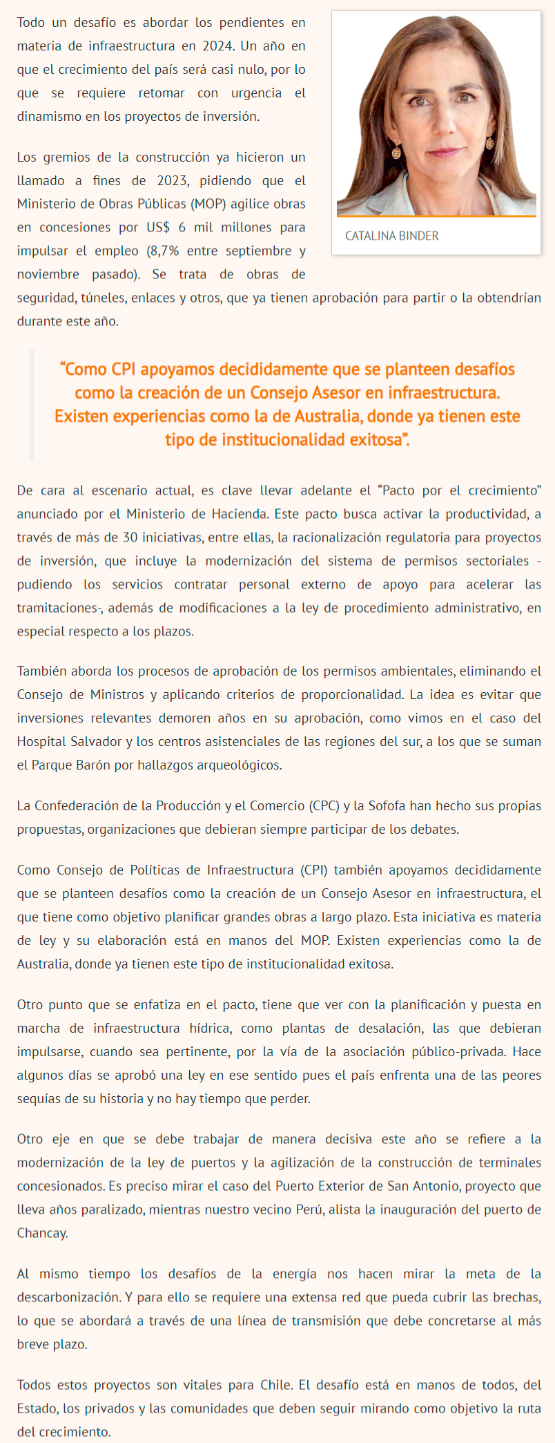 DIARIO FINANCIERO – Como CPI apoyamos decididamente que se planteen desafíos como la creación de un Consejo Asesor en infraestructura.