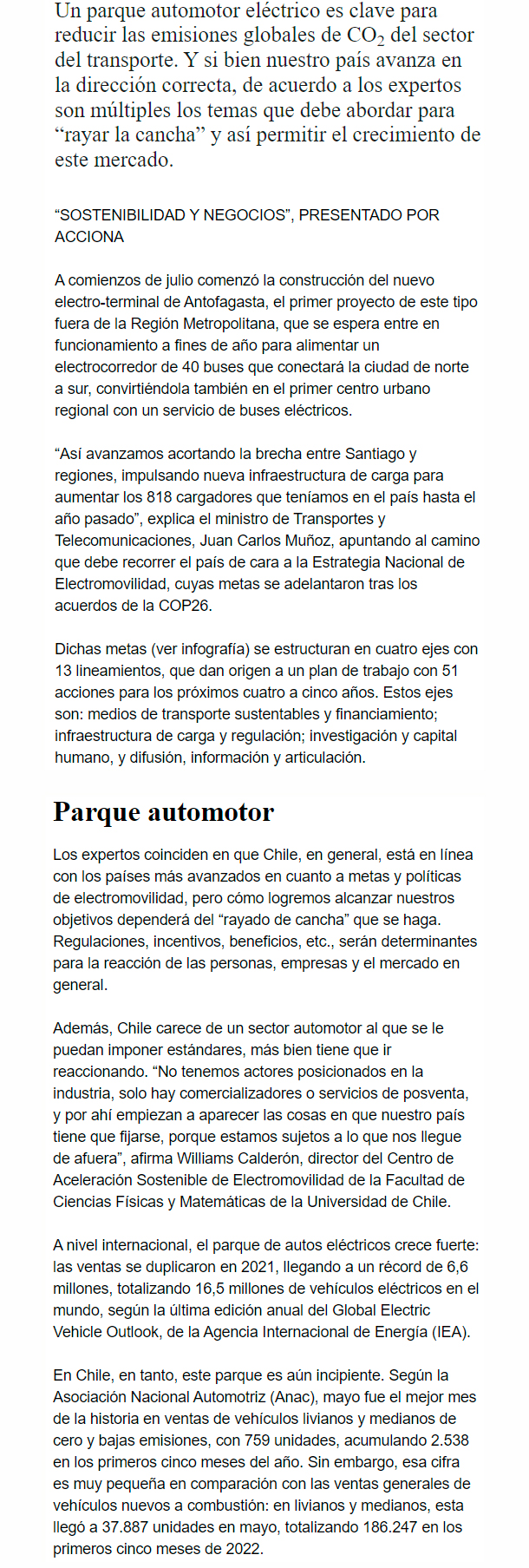 EL MERCURIO – Un parque automotor eléctrico es clave para reducir las emisiones globales de CO2 del sector del transporte.