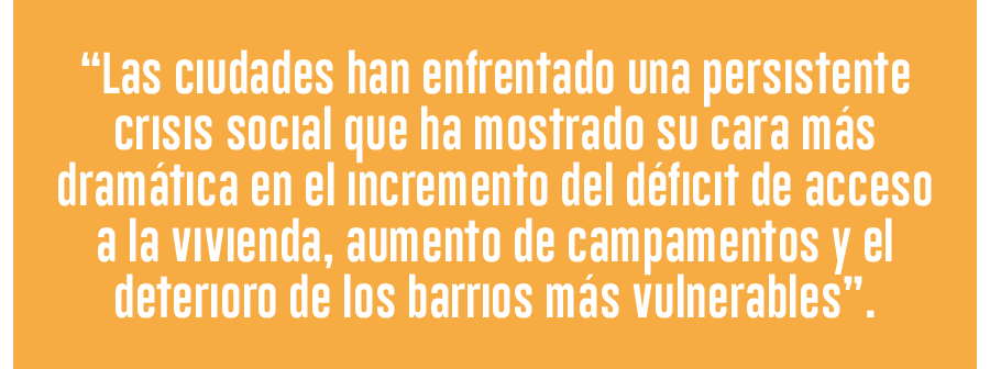 En este contexto, es evidente que el gobierno no logró abordar estas crisis e implementar consensuada y multisectorialmente los cambios necesarios para avanzar hacia ciudades más sostenibles y justas, reforzando en algunos casos las debilidades del centralismo y de la fragmentación de acciones entre ministerios, especialmente en los ámbitos de la vivienda, el transporte y la infraestructura. Durante este gobierno, se echó de menos el funcionamiento de la Comisión Interministerial de Ciudad, Vivienda y Territorio, y un mayor respaldo de las propuestas surgidas desde Consejo Nacional de Desarrollo Urbano.