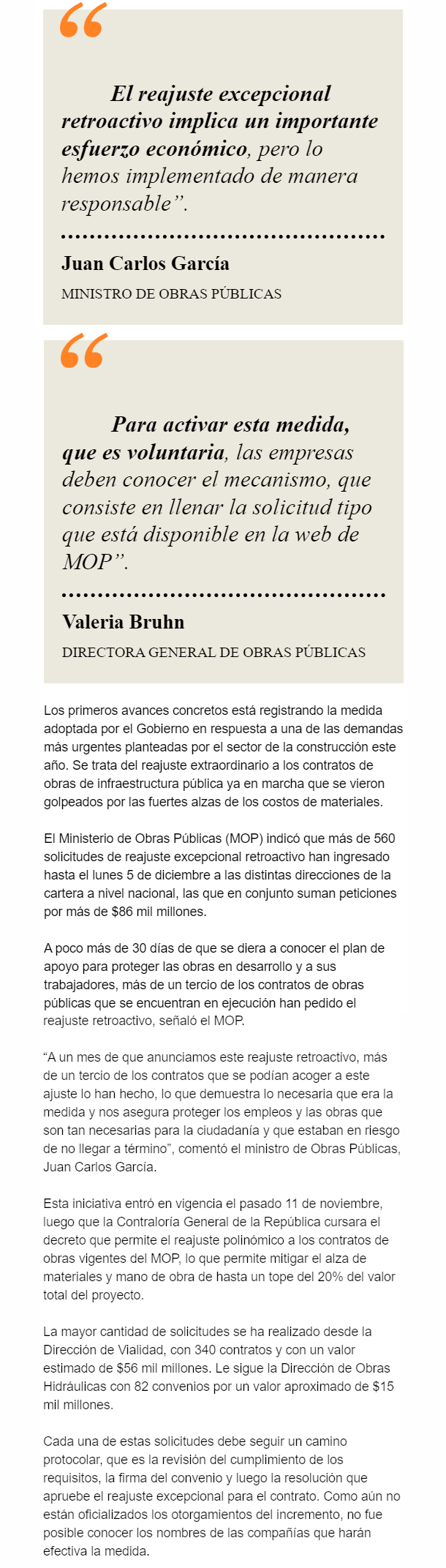 EL MERCURIO – Hace un mes, el Gobierno oficializó esta medida que permite mitigar el alza de los materiales y la mano de obra por hasta un tope del 20% del valor total del proyecto.