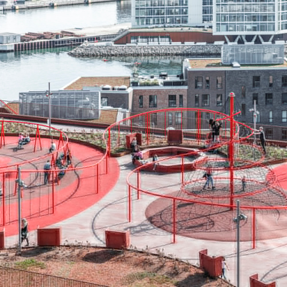 “Las casas de estacionamiento deben ser una parte integral de la ciudad. Pero, ¿cómo podemos desafiar el uso monofuncional de la casa de estacionamiento convencional? ¿Cómo creamos una estructura de estacionamiento funcional, que también es un espacio público atractivo? ¿Y cómo creamos una gran casa de estacionamiento que respete la escala, la historia y la cultura urbana futura de la nueva área de desarrollo Nordhavn en Copenhague?