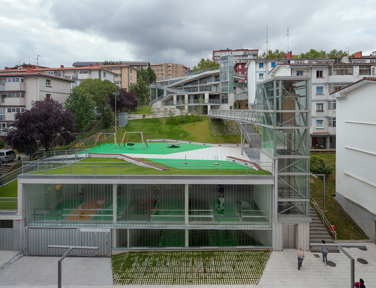 “La intervención, más allá de resolver un garaje, función que motiva el proyecto, se concibe además como una oportunidad para generar una infraestructura que resuelva de forma conjunta la accesibilidad total del barrio, proporcionando nuevos espacios públicos, zonas verdes y espacios de ocio.