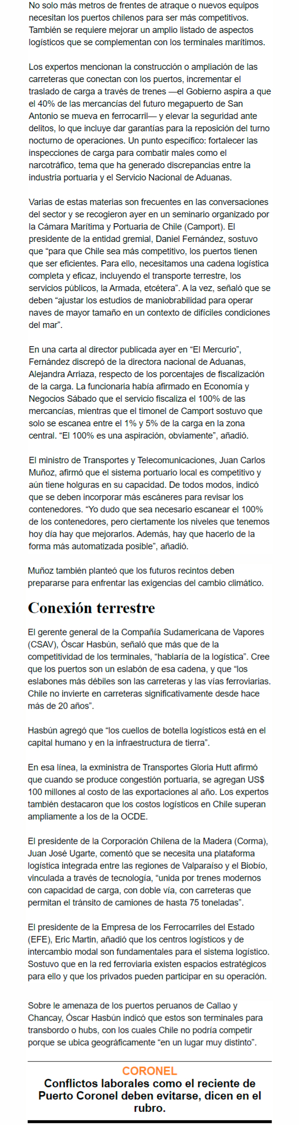 EL MERCURIO – El ministro de Transportes, Juan Carlos Muñoz, afirmó que se debe mejorar el porcentaje de contenedores escaneados