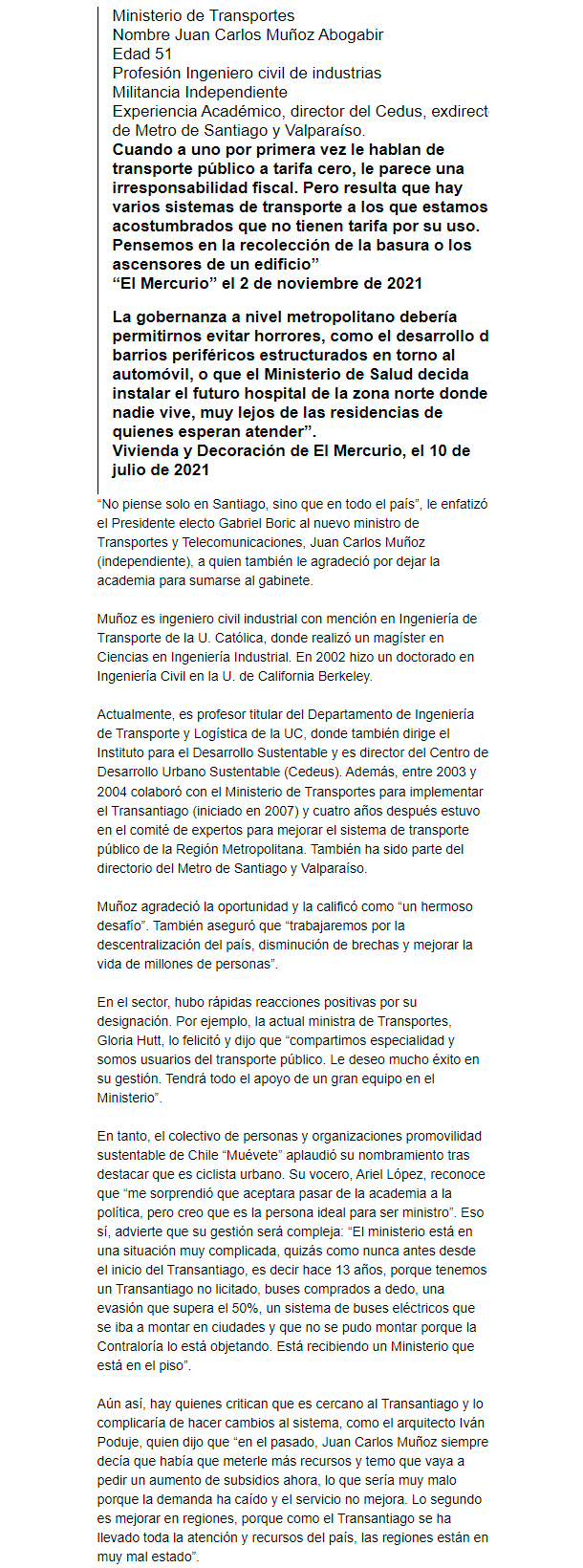 EL MERCURIO – Algunos expertos valoraron su designación, mientras que otros temen por su disposición a hacer cambios en el Transantiago.