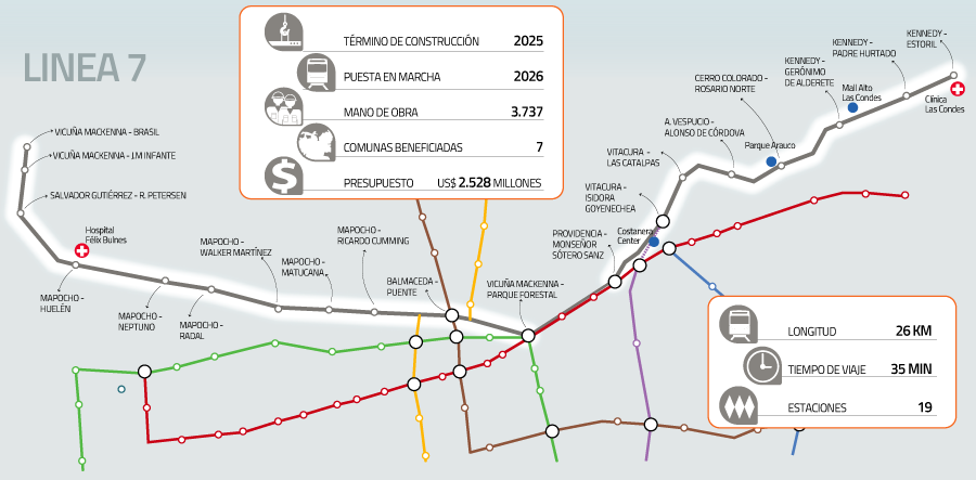 DIARIO FINANCIERO – El viernes pasado, Metro de Santiago ingresó al Sistema de Evaluación de Impacto Ambiental (SEIA) el estudio de la futura Línea 7, que unirá las comunas de Renca con Vitacura y Las Condes, que tendrá 19 estaciones y significará una inversión de US$ 2.598 millones.