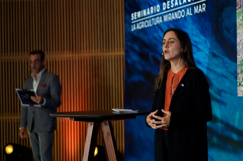 “Creemos que la búsqueda de nuevas fuentes de agua es fundamental para el sector agrícola. Una opción para nuestro país en esta materia, con más de 6 mil kilómetros de costa, es la desalación de agua de mar, así como otras medidas como la recuperación y reúso de aguas servidas. Estas soluciones se han implementado por el momento para el agua potable y la minería en la zona norte de nuestro país. Por ejemplo, con agua desalada se abastece al 85% de la población de Antofagasta y al 100% de la de Mejillones. Debido principalmente a sus altos costos, esta solución no se ha materializado para la agricultura, pero creemos que en un mediano plazo podría ser una alternativa”, señaló la ministra de Agricultura, María Emilia Undurraga.