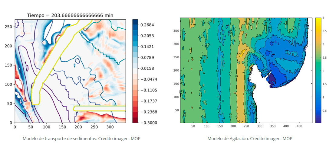 MOP – La Dirección de Obras Portuarias (DOP) en su función de desarrollar infraestructura en el ámbito costero, portuario, marítimo, fluvial y lacustre utiliza modelaciones numéricas para la evaluación de propagación de oleaje, análisis de agitación en dársenas, de transporte de sedimentos, evaluación de interacción oleaje – estructuras, además de evaluar escenarios de Cambio Climático, y análisis de amenaza de tsunamis.
