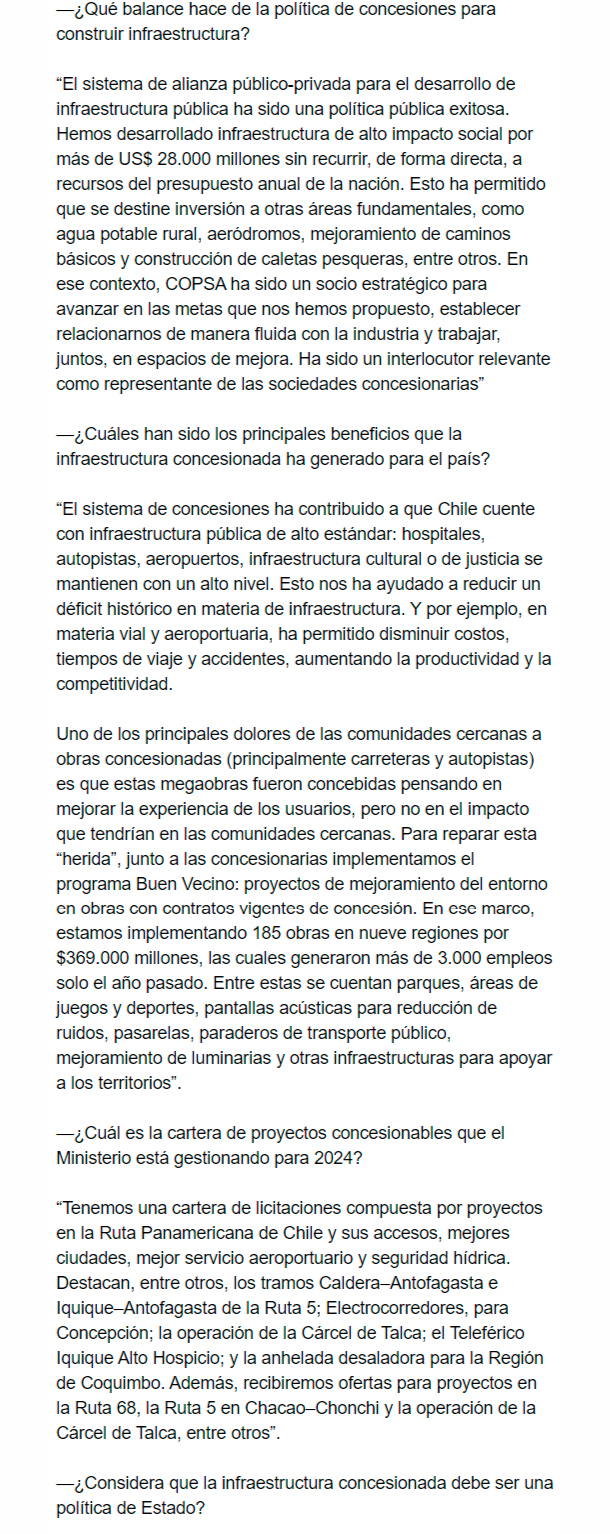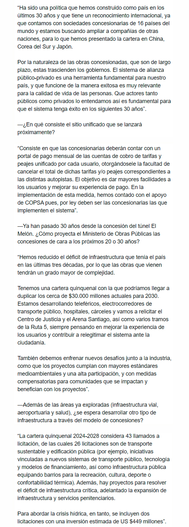 EL MERCURIO – según López, esta forma de trabajo ha permitido dotar al país de infraestructura pública de primer nivel, lo que ha contribuido a mejorar la calidad de vida de las personas.