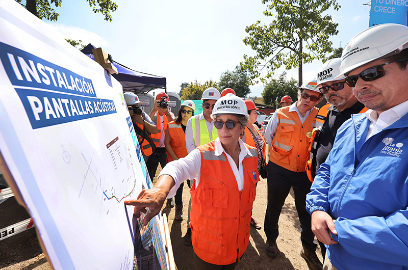 MOP – En el marco del Programa Buen Vecino, la ministra de Obras Públicas, Jessica López, supervisó la instalación de modernas pantallas acústicas en la Autopista Vespucio Sur, que buscan reducir el ruido en las zonas residenciales cercanas a esta vía concesionada que conecta a 9 comunas de la Región Metropolitana.
