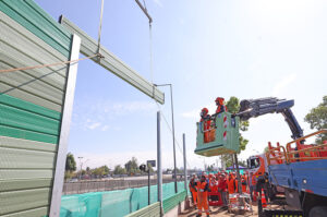 Los trabajos, que representan una inversión cercana a los 42 mil millones de pesos, contemplan la instalación de pantallas acústicas que fueron fabricadas en Italia y que cuentan con una moderna tecnología biabsorbente, que permite disminuir el ruido desde ambas caras de los paneles metálicos (interna y externa) gracias a una placa de material fono absorbente.