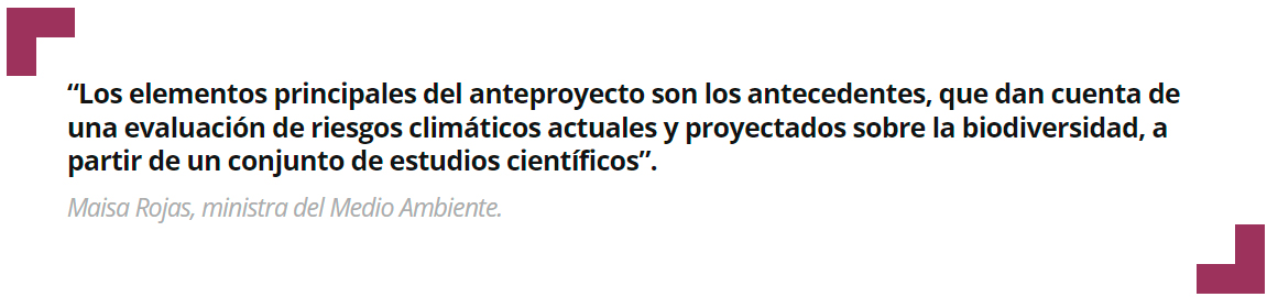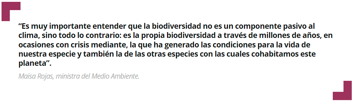 Junto a esto, la institucionalidad ambiental, tras 13 años de tramitación legislativa, se encuentra abocada a la creación del Servicio de Biodiversidad y Sistema Nacional de Áreas Protegidas (SBAP), que cuenta con varios instrumentos para proteger la biodiversidad dentro y fuera de las áreas protegidas, como, por ejemplo, el sistema de información de la biodiversidad, la planificación ecológica, planes de restauración ecológica, paisajes de conservación, entre otros. Esto promoverá la generación de conocimiento, el monitoreo y pronóstico de las relaciones entre biodiversidad y cambio climático, a fin de implementar oportunamente medidas de conservación y permitir la adaptación y mitigación de los efectos del cambio climático. Desde una perspectiva global, existe un llamado a trabajar sinérgicamente los temas de biodiversidad y cambio climático desde el Panel Intergubernamental de Cambio Climático (IPCC) y la Plataforma Intergubernamental de Biodiversidad y Servicios Ecosistémicos (IPBES). Por lo mismo, se puede decir que las convenciones de Biodiversidad y Cambio Climático también enfatizan la búsqueda de sinergias entre estos temas. Así, por ejemplo, el Marco de Global de Biodiversidad Kunming-Montreal identifica al cambio climático como un factor muy relevante, que cruza la problemática de biodiversidad y define una meta relacionada con ello.
