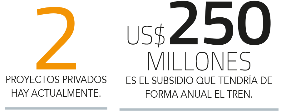 En el caso de que EFE sea el mandante del proyecto, correrá con la carga del subsidio que, hasta el momento oscilan entre US$ 200 millones y US$ 250 millones anuales, según los cálculos que hizo el expresidente de la estatal, Pedro Pablo Errázuriz, en algunas entrevistas la semana pasada. Este monto es similar a la cifra que todos los años entrega el Estado a la compañía para cubrir el déficit operacional.