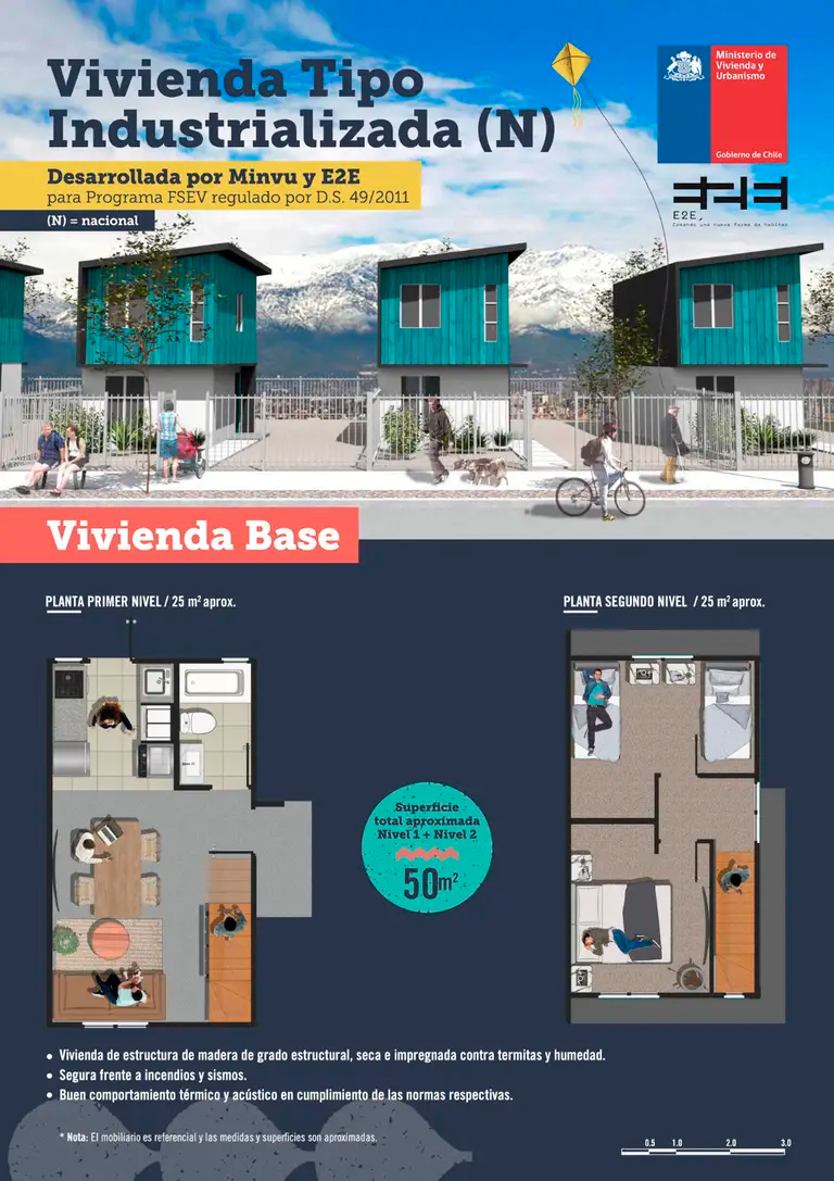 - Vivienda Base: dos pisos, superficie de 50 m2.