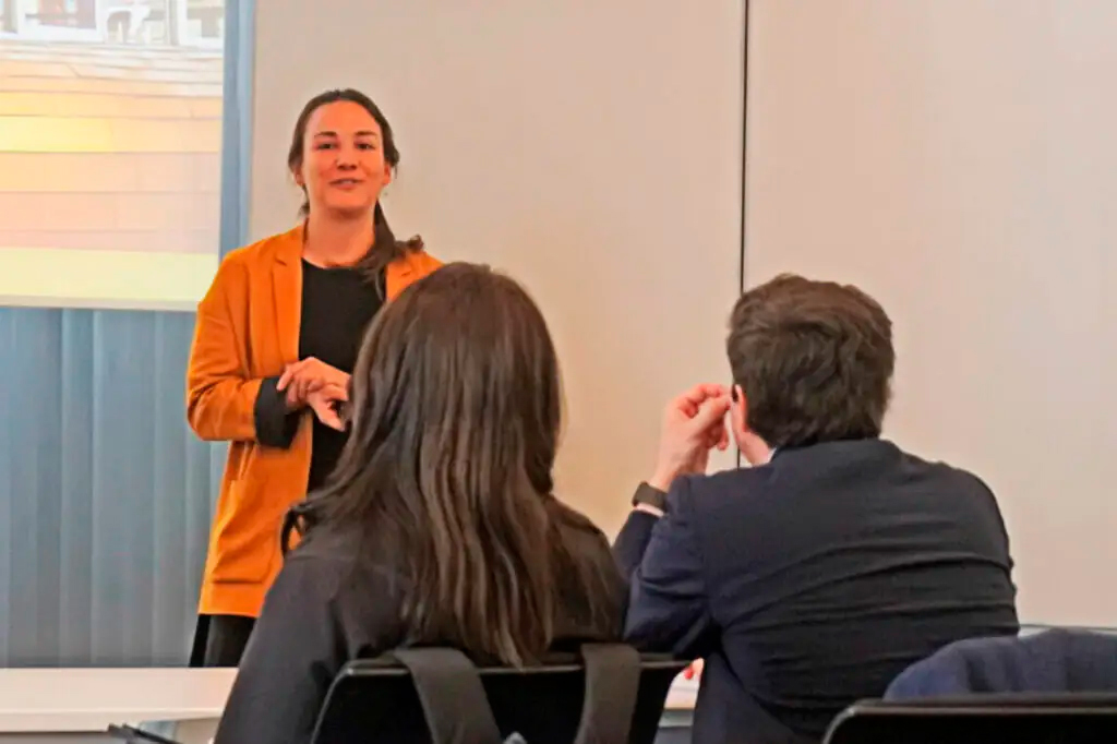 En nuestra tercera jornada, ya en tierras germanas, proseguimos nuestra exploración de conocimientos en logística en la ciudad de Hamburgo. Allí nos reunimos con Ina Litterst, encargada de internacionalización y modelos de negocios de KLU, con Antonio Correa, Cónsul de Chile en Hamburgo, y con nuestro Director Académico, Gordon Wilmsmeier. En el encuentro, Ina compartió con nosotros detalles de los distintos programas académicos que ofrece KLU, universidad dedicada al desarrollo e investigación en logística y transporte de carga. De la misma forma, el Cónsul Correa nos entregó un saludo como delegación y nos instó, como Conecta Logística, a seguir realizando este tipo de iniciativas. Por su parte, Gordon Wilmsmeier nos explicó sobre el desarrollo portuario en Alemania y sus distintas gobernanzas, además de proporcionarnos una introducción al Port of Hamburg, como preparación para la salida a terreno en dicho puerto.
